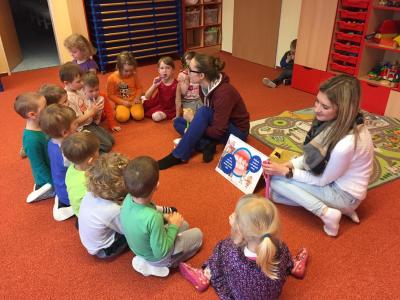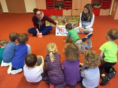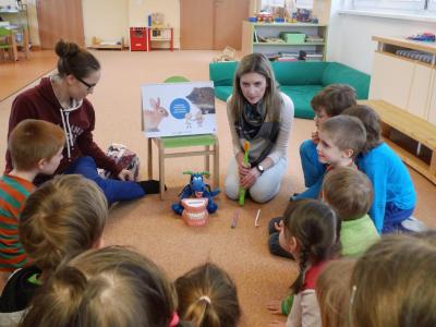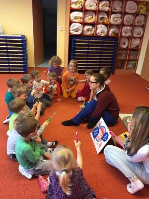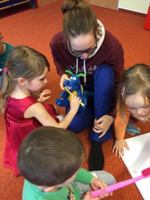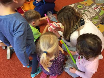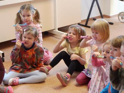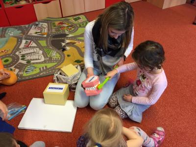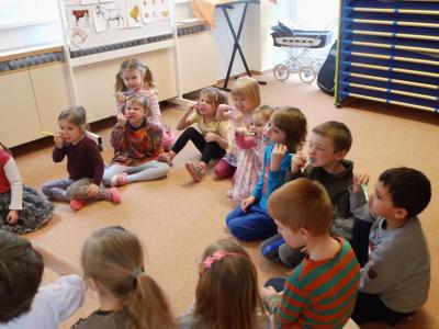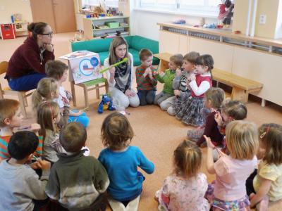Navštívily nás studentky lékařské fakulty, které nám vysvětlily důležitost ústní hygieny. Názorně jsme si vyzkoušeli jak si správně čistit zuby a zdramatizovali jsme pohádku o červíkovi.