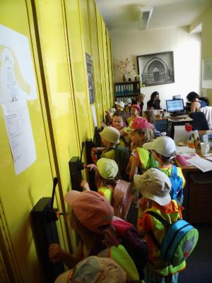 Navštívili jsme Národní památkový ústav v centru Brna, kde nám tatínek od Prokůpka a Mikuláše pověděl o historii Brna a ukázal nám archív, kde se nám moc líbilo.