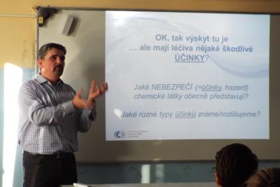 Vydáno: | Autorka: Mgr. Jitka TarabováV úterý 7. 1. 2020 proběhla v rámci hodin chemie na naší škole přednáška prof. RNDr. Luďka Bláhy, Ph.D. z výzkumného centra Recetox Přírodovědecké fakulty MU. V rámci této přednášky se studenti dozvěděli spoustu zajímavých informací o léčivech a jejich vlivu na naše zdraví.