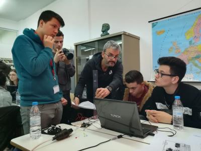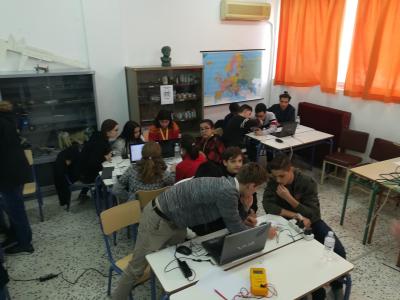 Druhý den pokračoval filmový workshop, tentokrát zaměřený více technicky: jak film rozčlenit do záběrů, z jakých úhlů a jakými pohyby snímat záběry kamerou, jak vybírat hudební podklad a jak video editovat. Třetí a čtvrtý den probíhaly dva nezávislé workshopy. První byl určený pro přírodovědně zaměřené studenty a měl název “Hands on the Internet of Things”. Skupiny po třech žácích obsluhovaly pracovní stanice, které sestávaly z notebooku a arduina (v podstatě také malého počítače), pomocí kterého lze sledovat a ovládat čidla nebo motory (vstup nebo výstup). V našem případě se jednalo o ovládání obvodů s LED diodami, měření vzdálenosti pomocí ultrazvukového senzoru, měření teploty a vlhkosti. Žáci se seznámili s programovacím kódem a díky zapojení do sítě mohli kontrolovat nejen své “věci”, ale i “věci” jiných skupin. Měli možnost pochopit, jak funguje chytrá domácnost, jak některá zařízení v domácnosti ovládat z kanceláře apod. Druhý workshop byl věnován tvorbě multimodálních textů (jeden den) a publikování na Wikipedii (druhý den).