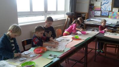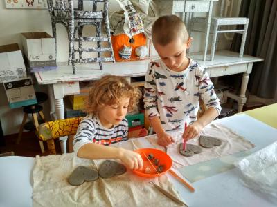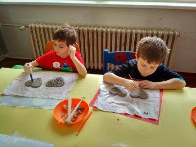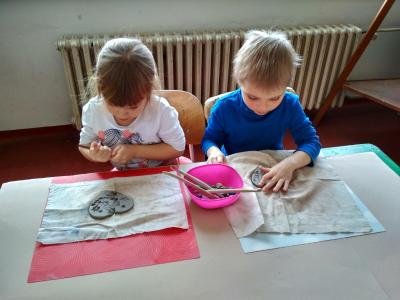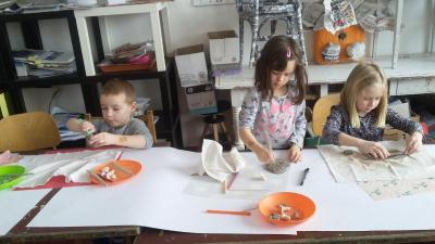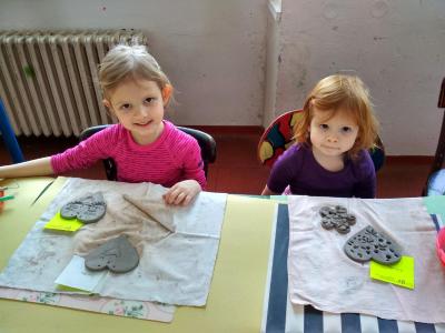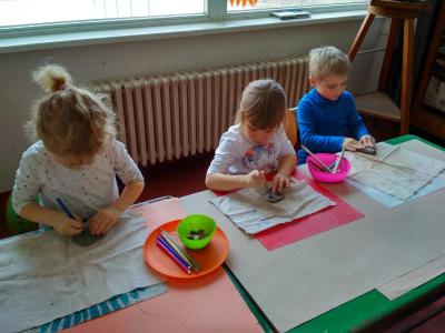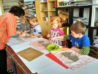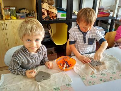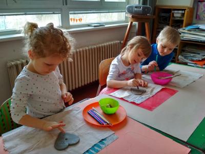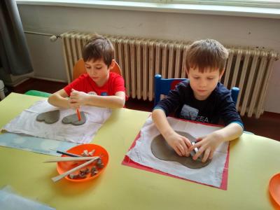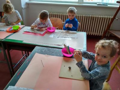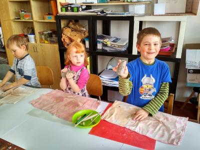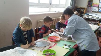 S dětmi jsme si vyzkoušeli práci s keramickou hlínou v učebně výtvarné výchovy. Děkujeme paní Mgr. Hruškové za ochotu a milý přístup.