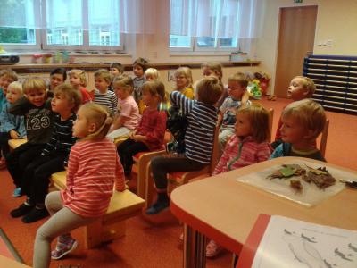 V pondělí 13.10.2014 nás navštívil pan Mgr. Pavel Josef Macků, Ph.D. s pohádkou o hudebních nástrojích "Babička Chrota vypráví".