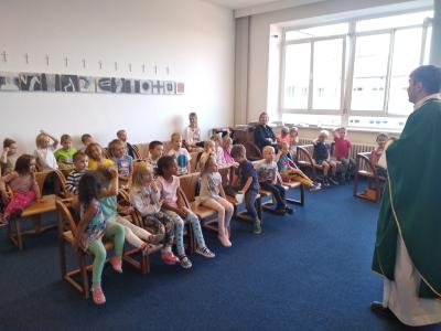Dětská mše svatá v kapli školy Vydáno: 12. října 2023, 13.30 | Autorka: Mgr. Lucie Chytilová 4 fotografieMše svatá sloužena školním kaplanem o. Jiřím JanalíkemAdministrace
