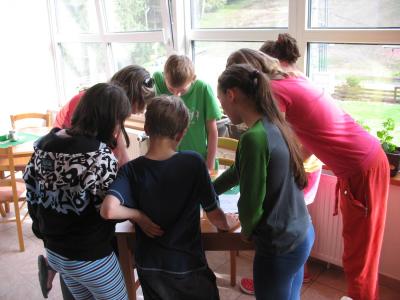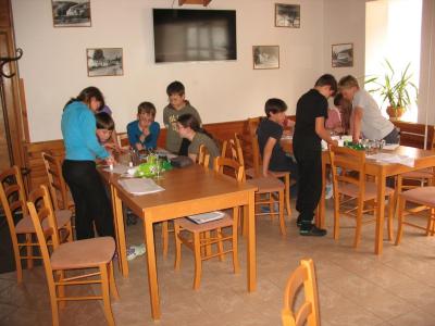 Dnes byla snídaně už od půl osmé, protože jsme museli vyjet tak, abychom stihli kyvadlo v devět hodin na Ovčárnu. Tam jsme nechali autobus a vydali se pěšky na Praděd. Na vrcholu jsme se občerstvili, někteří vyjeli výtahem na vyhlídku a na závěr jsme udělali společné foto. Dál naše kroky směřovaly na Švýcárnu, kde jsme si dali pozdní oběd a před chatou pozorovali v kaluži pulce. Pak už nám zbývalo jen seběhnout z kopce na Videlské sedlo, kde na nás už čekal náš autobus. Ten nás odvezl zpátky na chatu. Tam nás čekala ještě práce s pracovními listy a po ní už jenom volno na louce a sjezdovce před chatou.