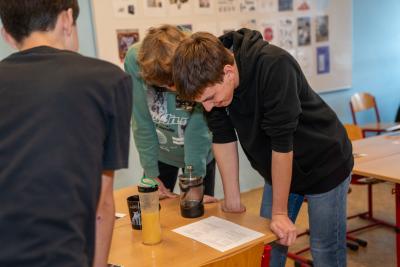 V týdnu 6.–10. října 2025 na škole proběhl tradiční projektový týden sext a druhých ročníků. Kromě zahraničních projektů ve Francii (komise francouzštiny) a v Itálii (komise latiny a dějepisu) a duchovního projektu (komise náboženství a ZSV) ostatní skupiny pracovaly většinou ve škole nebo v jejím okolí. Jednalo se o projekty komisí BIO+ZEM, FYZ, CHE, TEV a HV. Na přiložených fotografiích Vojtěcha Herše ze 4. A můžete vidět ukázku činností skupin chemie a hudební výchovy.