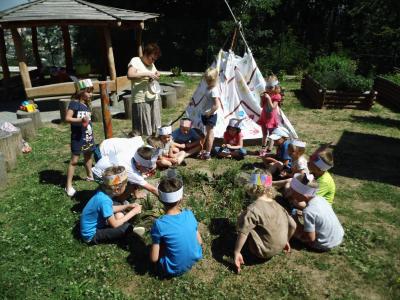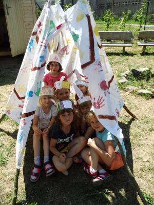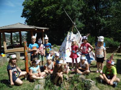 Třída Berušek prožila indiánský týden. Kmeny Mayů, Siuxů, Apačů a Bigiů stopovali a lovili divou zvěř, budovali típí a učili se vlastnostem správného Indiána.