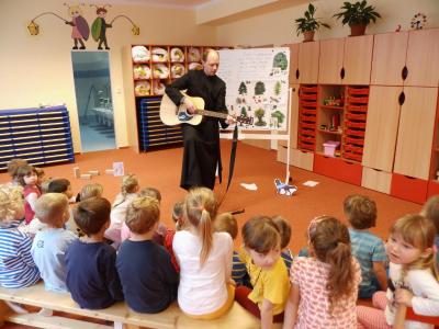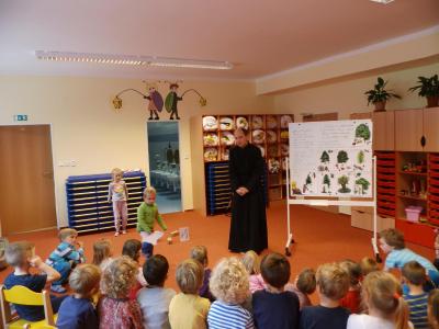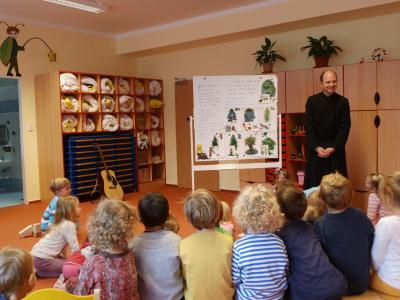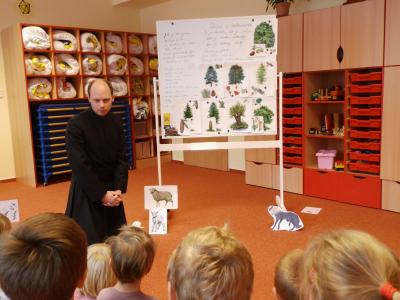 Sv. FrantišekVydáno: 6. října 2015, 0.00 | Autorka: Bc. Marie Jelečková6. října 2015 9 fotografiíDnes nás navštívil sv. František.Vyprávěl nám příběh, jak zachránil vesnici před zlým vlkem.Administrace