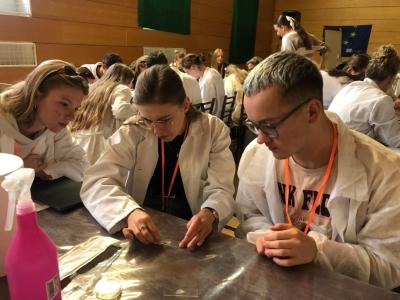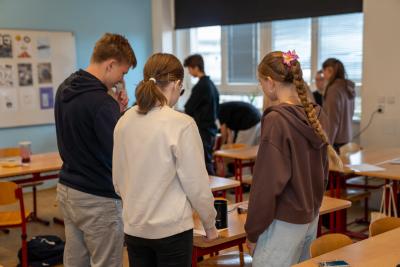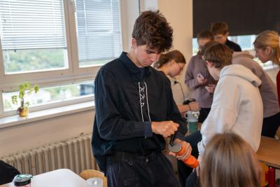 V týdnu 6.–10. října 2025 na škole proběhl tradiční projektový týden sext a druhých ročníků. Kromě zahraničních projektů ve Francii (komise francouzštiny) a v Itálii (komise latiny a dějepisu) a duchovního projektu (komise náboženství a ZSV) ostatní skupiny pracovaly většinou ve škole nebo v jejím okolí. Jednalo se o projekty komisí BIO+ZEM, FYZ, CHE, TEV a HV. Na přiložených fotografiích Vojtěcha Herše ze 4. A můžete vidět ukázku činností skupin chemie a hudební výchovy.
