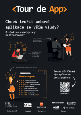 Studentský spolek Student Cyber Club zve žáky se zájmem o programování k účasti na 3. ročníku týmové programovací soutěže Tour de App.