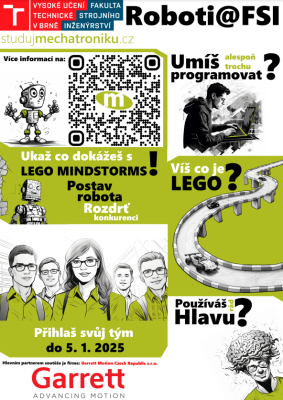 Používáte rádi hlavu? Víte, co je LEGO? Umíte alespoň trochu programovat? Ukažte, co dokážete se stavebnicí LEGO MINDSTORMS! Fakulta strojního inženýrství VUT v Brně pořádá osmý ročník soutěže středoškolských týmů Roboti@FSI.